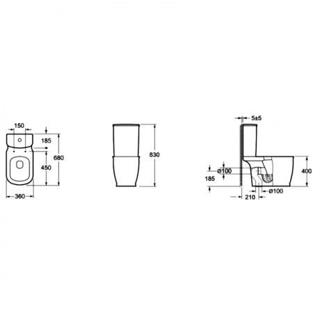 8210015 SHAPE Бачок до компакту 8190015 з малим отвором для кнопки, без зливного механізму (1 сорт)