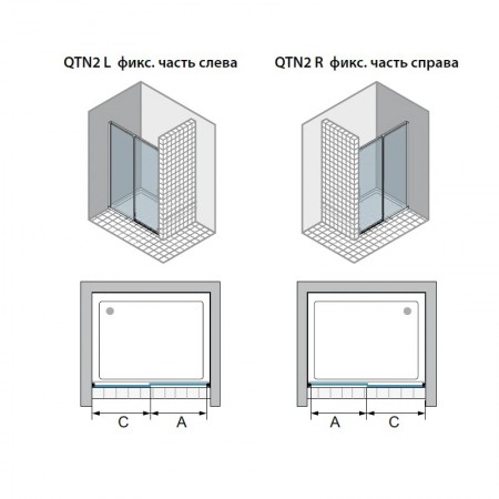 QTN2 R 1400 A10 CSH Acqua R 5000 2-секційні розсувні двері в нішу 1400 мм. (1 сорт)