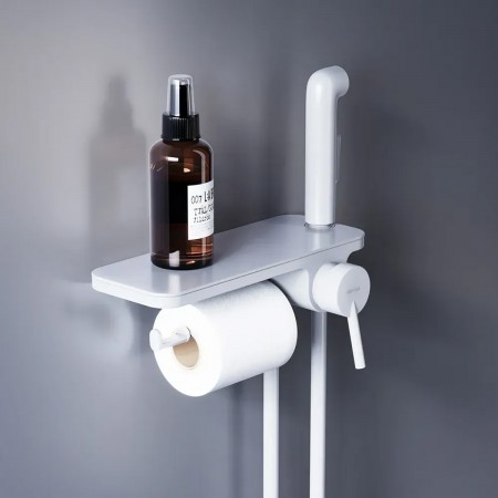 773500200 Jupiter, Вбудований в стіну змішувач з гіг душем і полицею, білий (1 сорт)