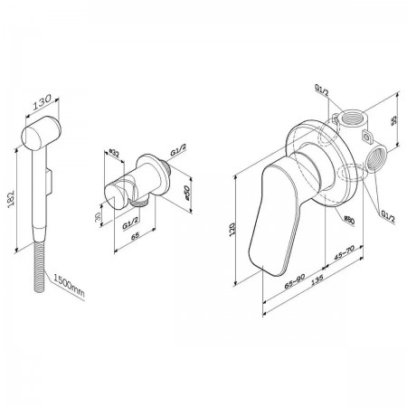 F40H85A00 X-Joy, гігієнічний набір для прихованого монтажу зі змішувачем для душу (1 сорт)