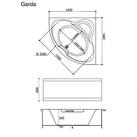 Ванна акрилова WGTRialto GARDA 140x140х58, колір білий глянець (1 сорт)