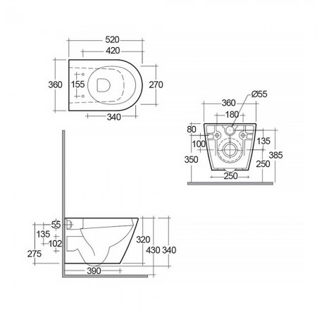 RST23500A FEELING Унітаз підвісний, Rimless, Matt White (1 сорт)