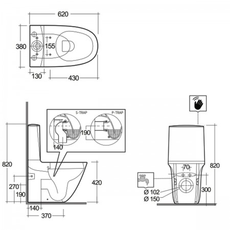 SENWC1146AWHA+SENWT1800AWHA+SENSC3901WH RAK SENSATION Компакт, білий (1 сорт)