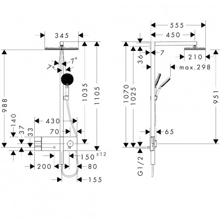 24620000 HG Raindance Alive Q Душова система 210/340 1jet з термостатичним змішувачем та внутрішньою