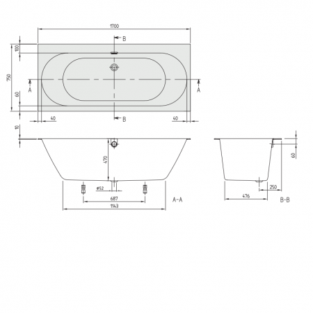 uBQ170OBR2DV-01 OBERON 2.0 Ванна 170х75 (1 сорт)
