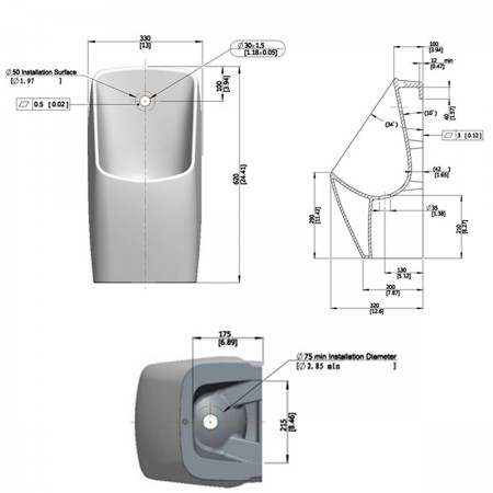 5673437 Quadra Уринал з сифоном,донним керамічним клапаном,з верхньою подачею води (1 сорт)