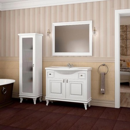 18748 шафа БЕАТРІЧЕ 100 (біла патина хром) - шафа під умивальник в к-ті з умивальником LILA 100x48 с