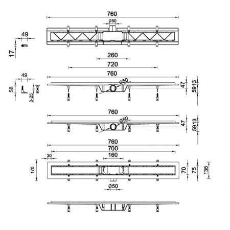 STY-M-70 Душовий канал із полірованою решіткою 700 мм Медіум із сухим затвором (1 сорт)