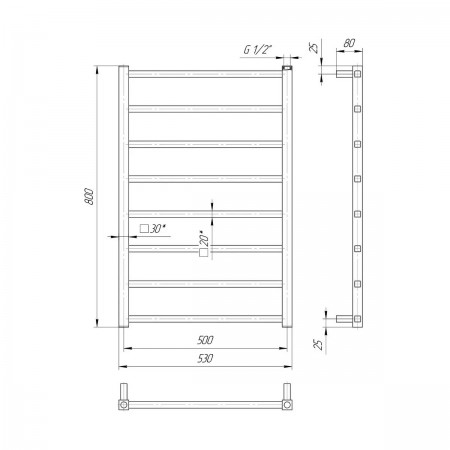 1.7.044615.P Рушникосушка INOX Токіо 770х530/500, Полір.нержав. (1 сорт)