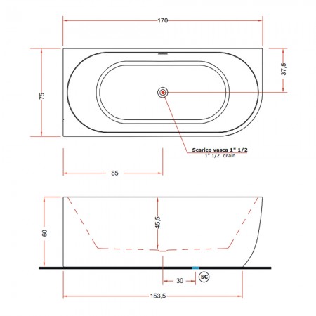V057BL00SX CORA Ванна асиметрична із вбудованною панеллю, з д\к 170 x 75 x 52h, ліва, білий гляне