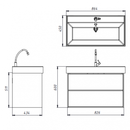 083085G QUADRA Тумба 85 сіра матова з умивальником та сифоном (1 сорт)
