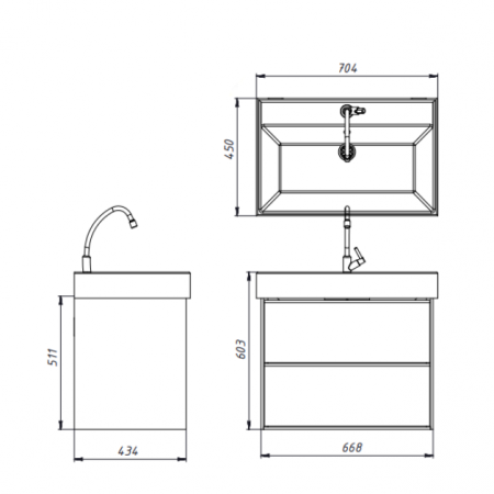 083060G QUADRA Тумба 60 сіра матова з умивальником та сифоном (1 сорт)