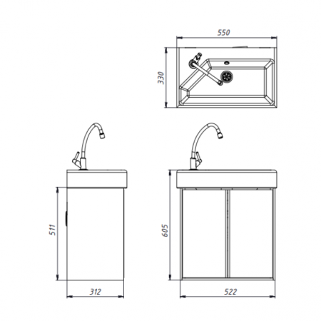 083055W QUADRA Тумба 55 біла глянцева з умивальником та сифоном (1 сорт)