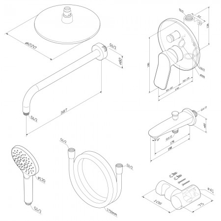 F0785C922 Sunny,душ.система,набір:зм-ч д/ванни/душу,верх душ d220 мм, ручний душ 110 мм, 1 функція,