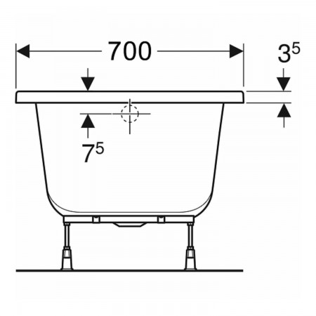 5341000 SUPERO Ванна акрилова прямокутна 150x70см, колір білий, в комплекті з ніжками SN14 (1 сорт)