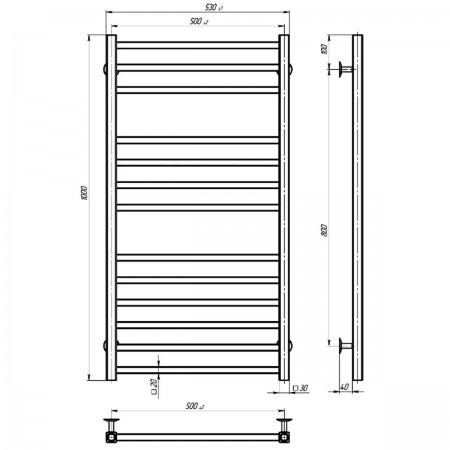 UN500800EBS UNIVERSAL Рушникосушарка електрична П10 500х800 з чорної сталі, колір чорний матовий (1