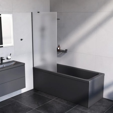 W90UBS-080-140BM Gem Шторка на борт ванни 80х140, фіксована профіль чорний мат, скло прозоре (1 сор
