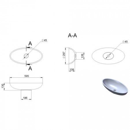 Раковина Nice 600х300 накладний, колір білий, покриття глянець (1 сорт)