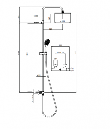 L10172 073 ELIOS Душова система з термостатом, верхнім та ручним душем зі шлангом, чорний мат (1 сор