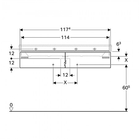 500.551.01.1 Xeno2 Раковина 120 см, з 1 отвором під зміш., без переливу, KeraTect, колір білий гляне