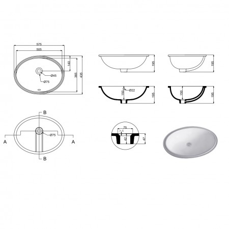 1613110 LAGUNA Раковина 60 врізна під стільницю з кріпленнями (1 сорт)