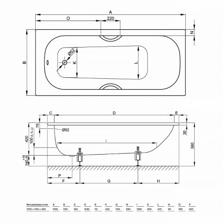 2945-000 Bette Form Ванна із шумоізоляцією 1700x700, сталь, біла (1 сорт)