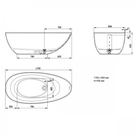 VABELLO/00 BELLA OVO Ванна окремостояча 170*80 см з литого (штучного) каменю, з інтегрованим сифоном