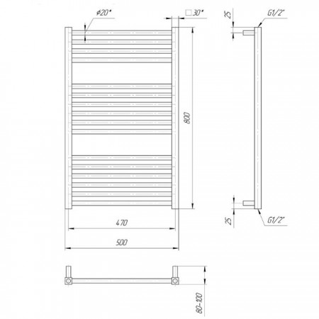 1.2.0400.03.P Рушникосушка ГЕРА 800х500/80 мм, Полір.нержав. (1 сорт)