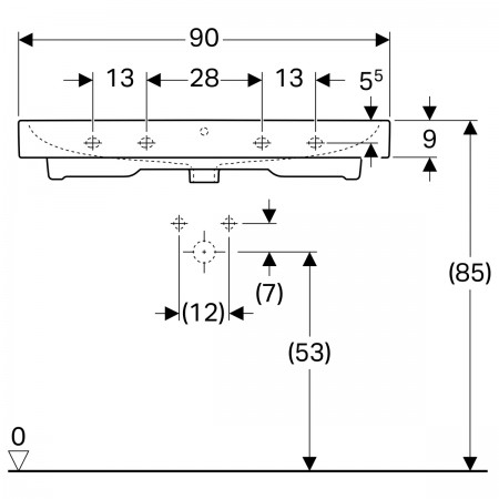 124090000 iCon Умивальник 90 см, з 1 отв.під зміш., з переливом, колір білий глянець (1 сорт)