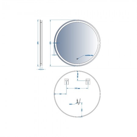 5501090 AllRound Кругле дзеркало d90см з LED підсвіткою та тачсенсором (1 сорт)