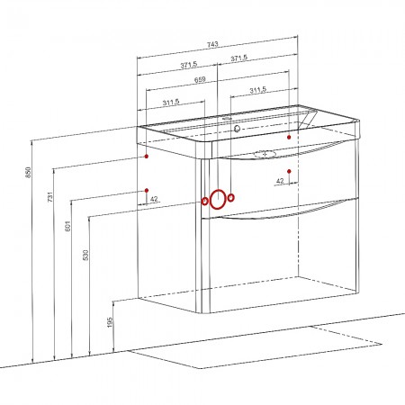14850 тумба Амеріна 75 см (консольна) - з раковиною DEEP 750мм, біла (1 сорт)