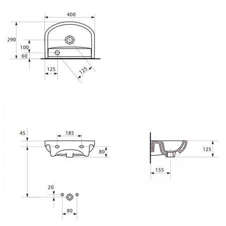 K667-025 ARTECO Умивальник меблевий 60 з отвором для змішувача, з переливом, білий глянець (картон)