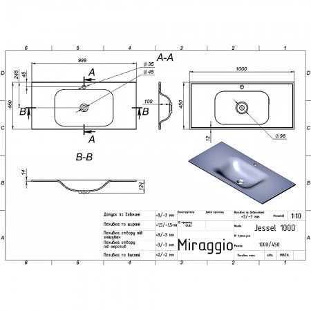 Раковина JESSEL 1000 врізний, колір білий, покриття глянець (1 сорт)