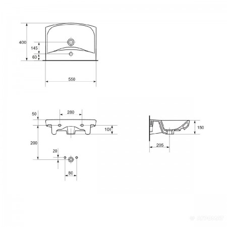 CARINA Раковина-55 з отв. (1 сорт)
