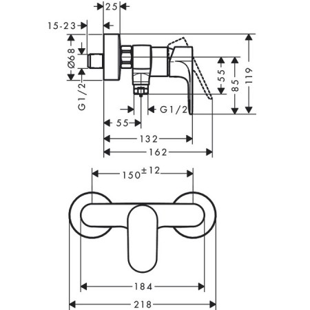 72640000 Rebris S Одноважільний змішувач для душу зовнішного встановлення, хром (1 сорт)