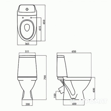 L39004000 MODO Унітаз-компакт, вертикальний випуск, з дюропластовим сидінням з мікрол, 3/6 л, нижній