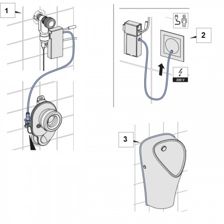 116.076.00.1 Система електронного керування змивом уринала, живлення від мережі, прихований монтаж (
