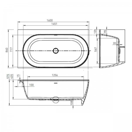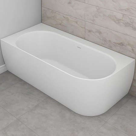 60.086.043.1-2.X.3.X.X Ванна Scorpius Lite ліва, з переливом та сифоном, біла, штучний камінь,1600x8
