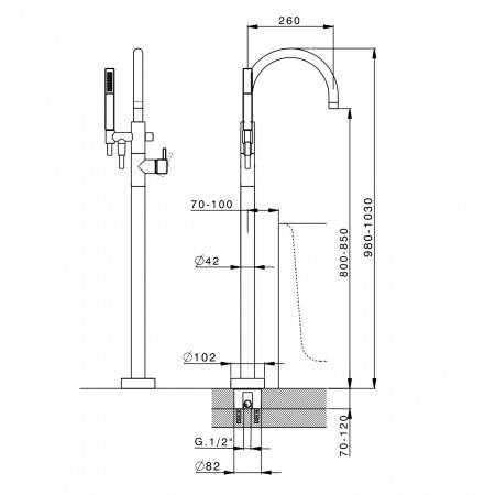 15061140B ART Змішувач з підлоги д/ванни, чорний матовий (1 сорт)