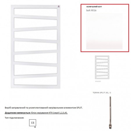 WLZIG083050KS96E8TS1D Рушникосушка електрична Terma ZIGZAG 835*500 , колір Soft 9016 (білий мат - е
