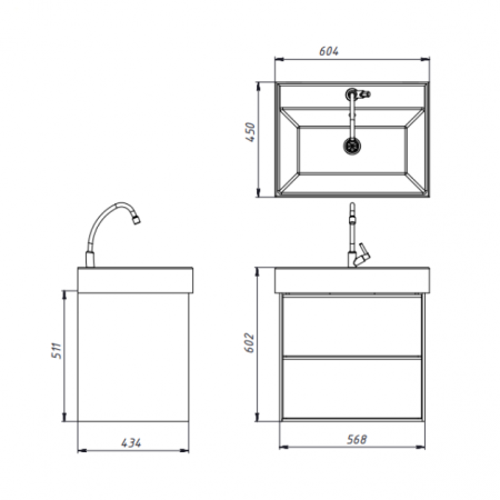 083060G QUADRA Тумба 60 сіра матова з умивальником та сифоном (1 сорт)