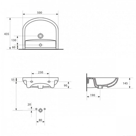 K667-105 Умивальник меблевий ARTECO 55 ONE HOLE з отвором для змішувача (картон) ( CCWS1009750001 )