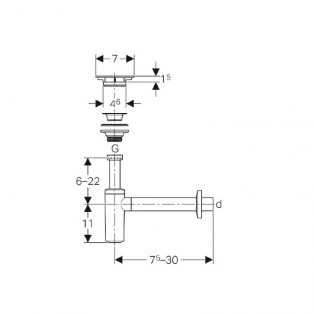 151.020.21.1 Сифон д/раковини із з'єднувальним елементом та кришкою зливного отвору, хром глянцевий