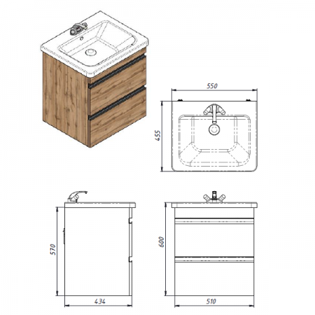 753055O FRAME Тумба натуральний дуб 55см з раковиною та сифоном (1 сорт)