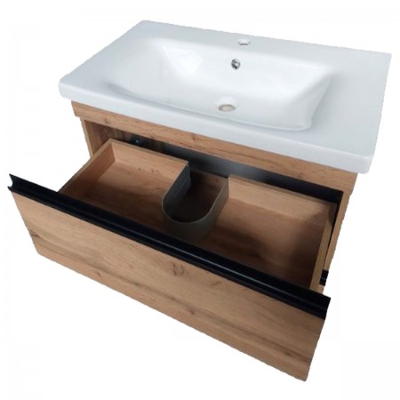 753100O FRAME Тумба натуральний дуб 100см з раковиною та сифоном (1 сорт)