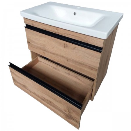 753080O FRAME Тумба натуральний дуб 80см з раковиною та сифоном (1 сорт)