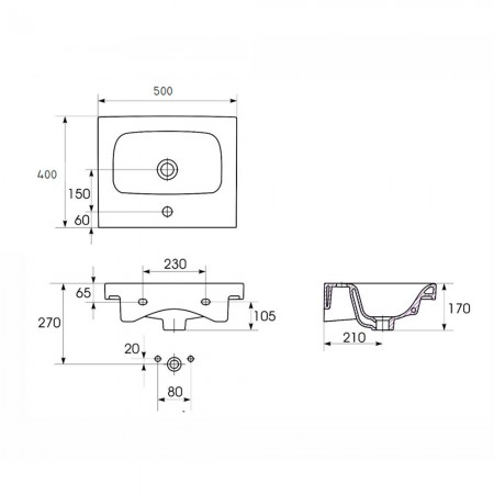 K116-050 MODUO Раковина на стільницю прямокутна 50х36, білий (1 сорт)