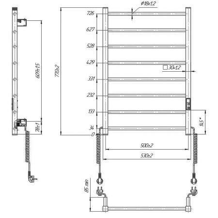 6.1.0802.06.WM Рушникосушка ел. HF Leeds 770x530 білий мат, в комплекті з прих.підкл (1 сорт)