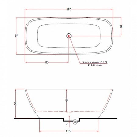 V297BO/V2970XBO800S BRIO Ванна із штучного каменю 170 x 72 x 56h, білий матовий (1 сорт)