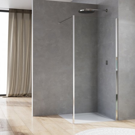 D20F10804007 Arelia Бічна стінка в 90°, 800мм, скло прозоре, проф.срібний полір. (1 сорт)